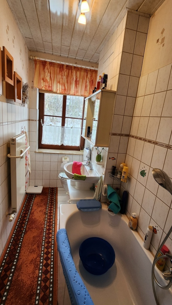 Am Ortsrand gelegen, mit Fernblick, finden Sie dieses teilsanierte Einfamilienhaus mit Garten. Mit Garage, Vollkeller und Terrasse ist es auch für größere Familien und Berufstätige bestens geeignet. Alternativ kann das Objekt auch als Zweifamilienhaus betrieben werden. Hier finden Sie ein ordentliches Gebäude mit intaktem Nebengelass. Das gesamte Grundstück macht einen ordentlichen Eindruck und bietet ausreichend Platz zum Basteln oder als Abstellfläche. Der Wohnbereich erstreckt sich über zwei Ebenen. Aufgeteilt auf sechs Zimmer, bietet dieses Haus viel Raum für individuelle Gestaltungswünsche.
