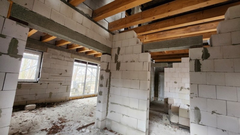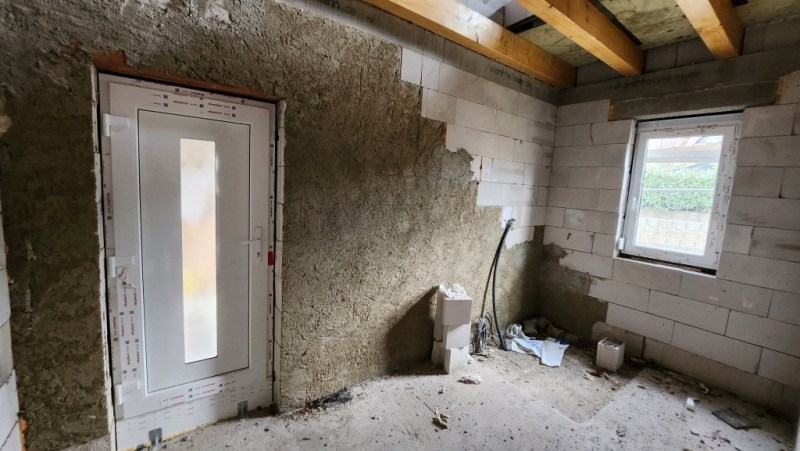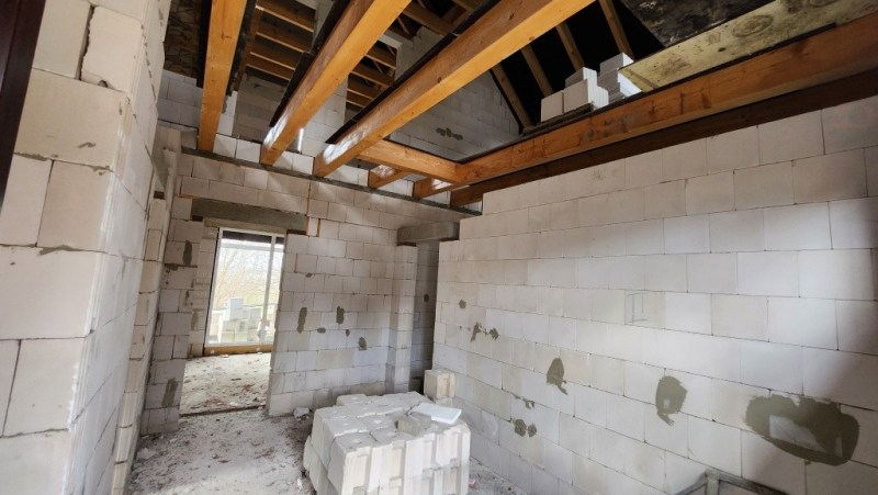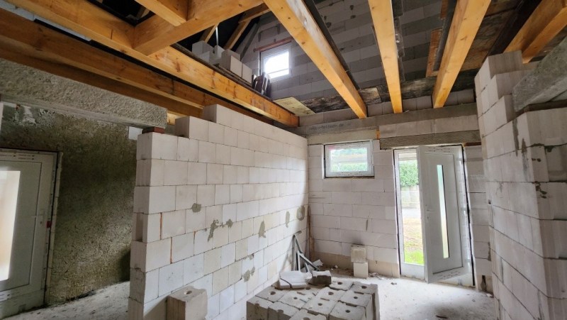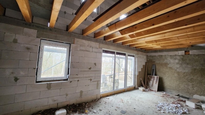 Das Objekt wird als Ausbauhaus im fortgeschrittenen Rohbauzustand verkauft. Dach, Fenster sowie die Holzbalkendecke sind bereits vorhanden und bilden eine solide Grundlage für die individuelle Fertigstellung nach eigenen Vorstellungen.