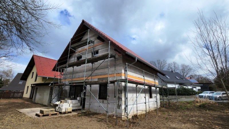 – Rohbau mit Dach, Fenstern & fast fertiger Garage